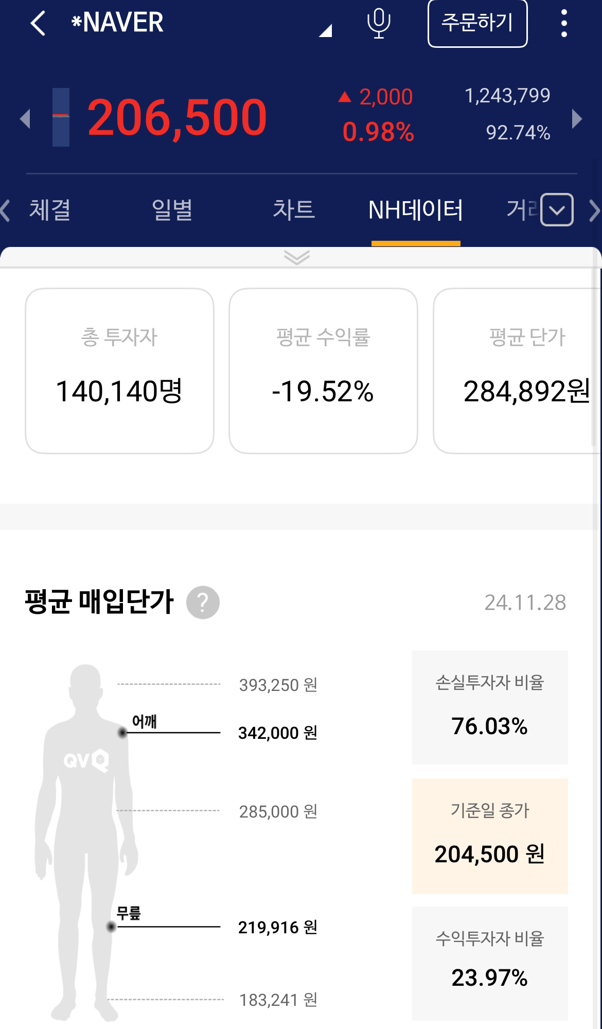 인터넷 , AI, 광고주식인 네이버는 약 75%의 투자자가 손해를 입고 있습니다.