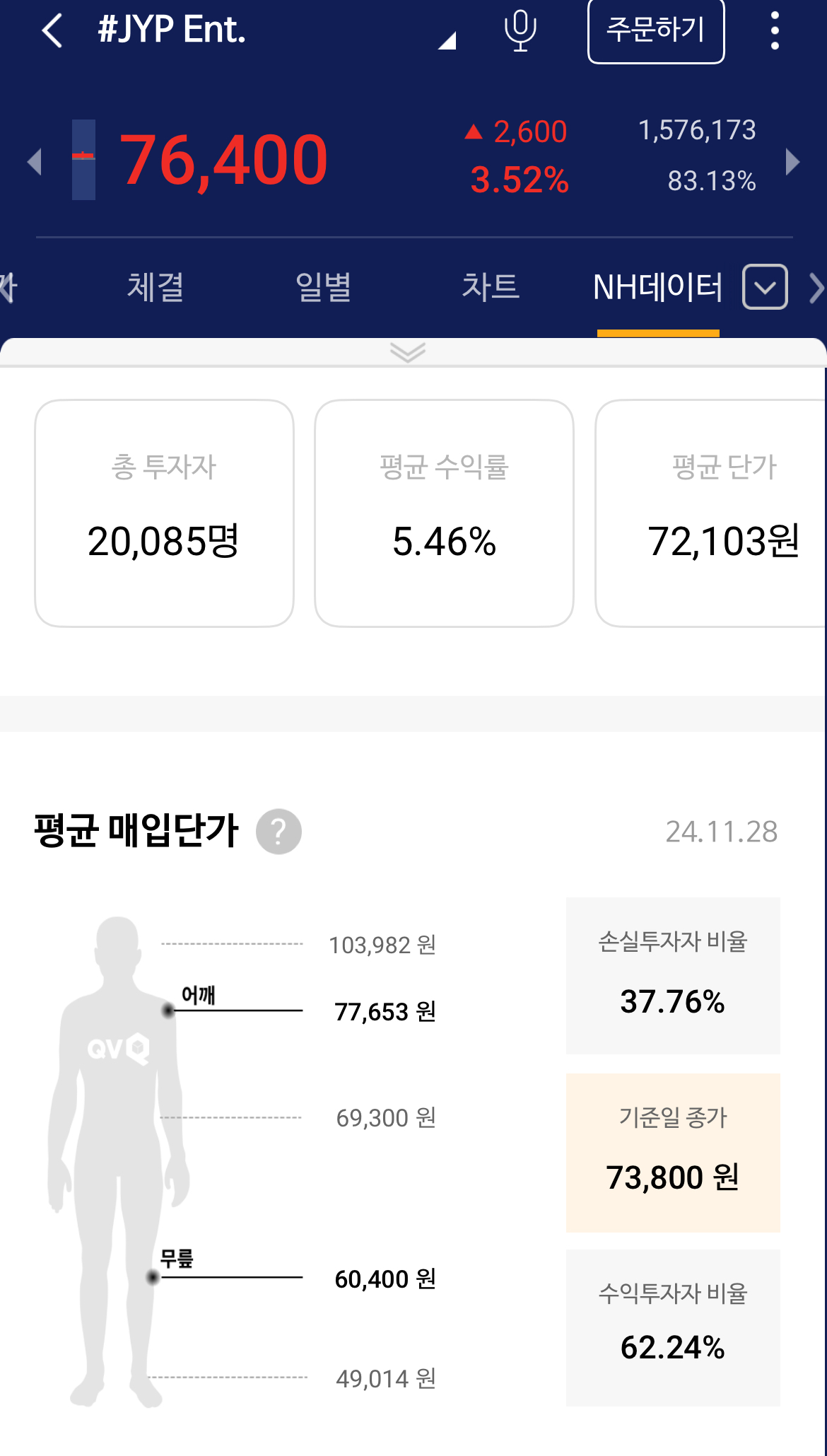 진영이형의 JYP는 건재합니다. 투자자 62%가 수익중입니다. 어디랑은 다르네요.