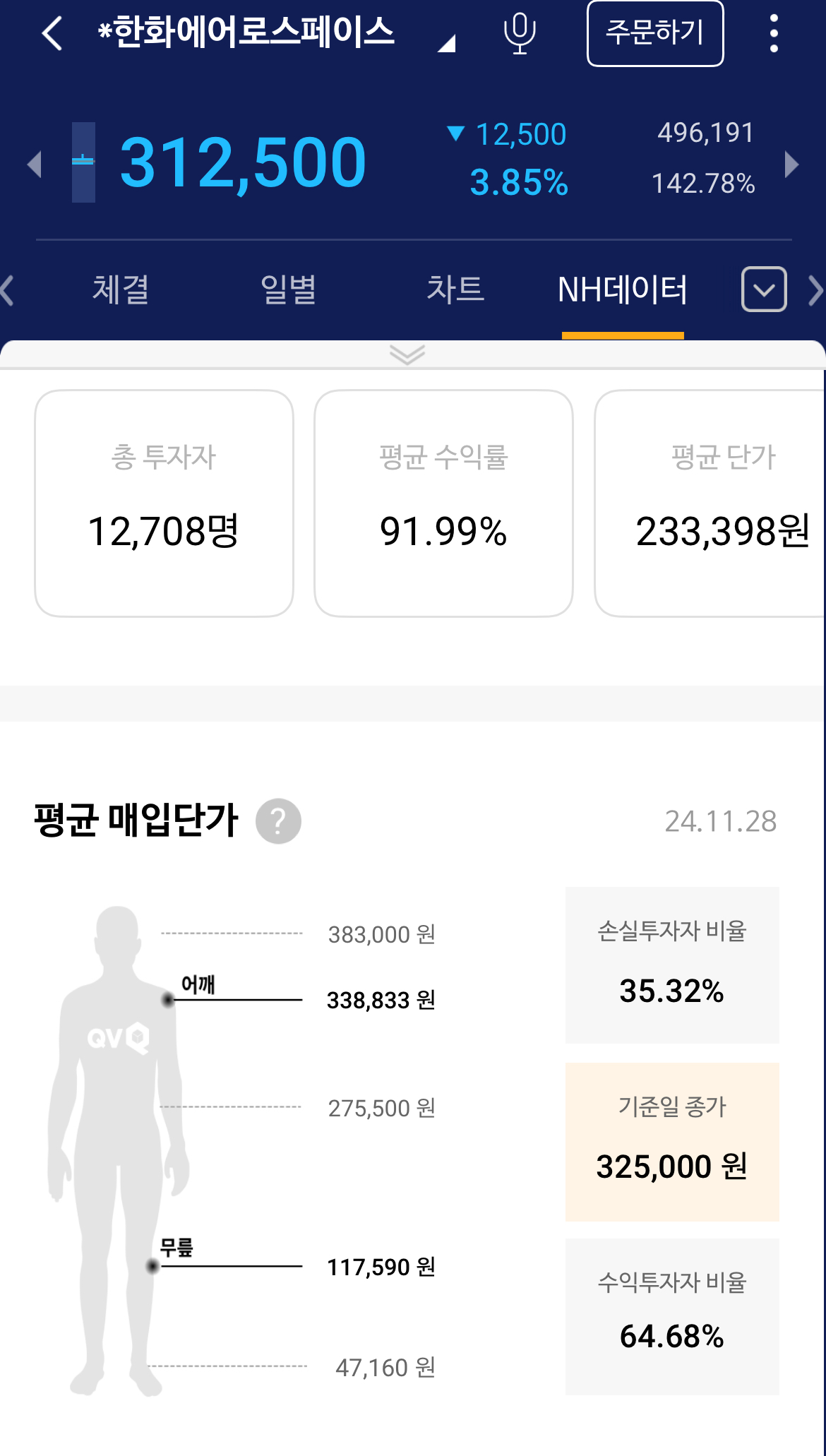 방산주 대장이 된 한화에어로스페이스 입니다. 투자자의 65% 가 수익을 내고 있습니다. 좋네요!