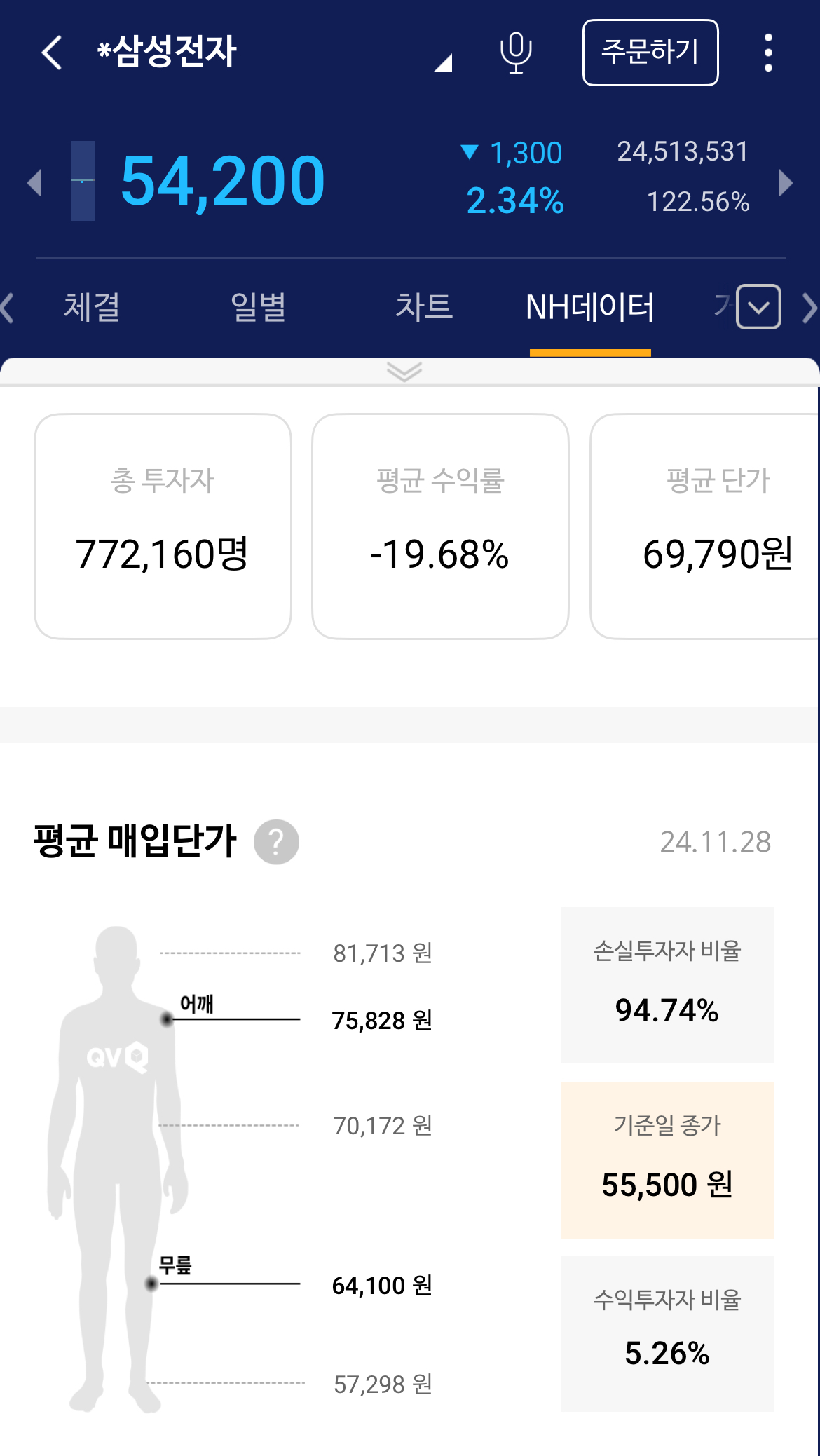 대한민국 대표 주식 삼성전자는 투자자 95%가 손실을 입고 있습니다. 이는 우리나라 대부분이 손실이라고 해도 무방하죠. 음.. 이래서 미국주식시장으로 가는걸까요;