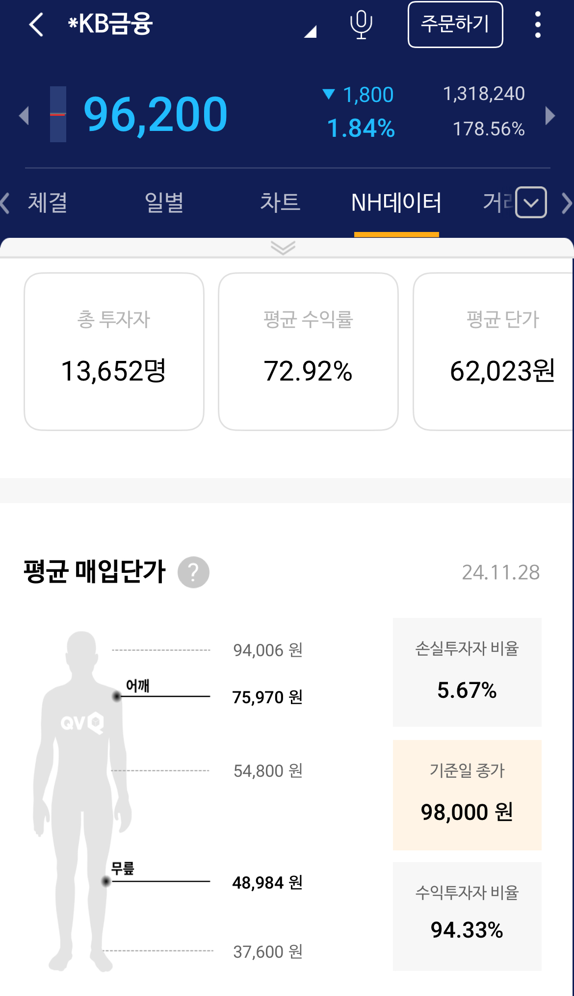 금융주 대표인 KB금융인데 , 투자자 95% 가 수익을 내고 있습니다. 와우!!!!!